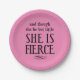 Though she be but little, She is fierce Pink Paper Plate