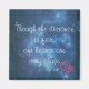 Though the distance is far, our hearts are very close. Long distance love note. The background is a graphic illustration of space in dark and light blues and misty purples. An artistic rendition of the vastness of space with stars, clouds, nebula and galaxies shining and illuminating the far reaches of outer space with a cool and cosmic atmosphere.