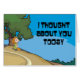 A cartoon graphic of a girl sitting under a tree on a hill with the words I thought about you today. The inside says It was so nice I'm going to do it again tomorrow.