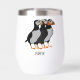 Atlantic puffin, horned puffin, and created puffin, all standing to together. These adorable friends are done in cartoon style.