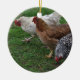 Three chickens enjoying the spring weather.