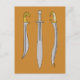 This illustration by Richard H. Fay depicts three swords of ancient Greece: a single-edged machaira, a double-edged leaf-bladed hoplite xiphos, and a single-edged forward-curving kopis.