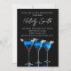 Three blue cocktails with cherry on black invitation