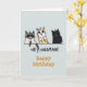 Send wishes to someone very special on their birthday with this funny cat card. Three cats with saying 'hey, hooman' and 'happy birthday' expression on light blue colour will bring smile to everyone's face. The mini size of three cats illustration is also printed on the back. This card's expression can be personalised with your own words.