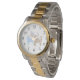 Very good quality watch that looks good whether dressing up or down. The band is sturdy. The watch is rather large so might not work for smaller folks. Recommended as a good gift. Printing is just a touch light but adds a nice touch of personalization.