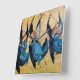 THREE CHRISTMAS ANGELS IN BLUE SQUARE WALL CLOCK