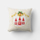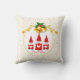 Three Christmas gnomes dressed in red, golden bells and gold confetti Pillow.
