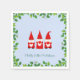Three Christmas Gnomes & Leaf Frame on Light Blue Napkin