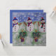 On a snowy Christmas Eve the three cute snowmen have just realized their mistake. They have only decorated two pretty Christmas trees with tinsel, colored glass balls and a Christmas star on top. So which snowman misses out on his gifts from Santa Claus? This is a colorful, festive three Christmas snowmen original watercolor that is full of the sparkle and spirit of the holiday season.