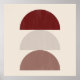 A modern minimalist style abstract artwork with three harmoniously colored painted crescents with a subtle brush stroke texture. With a cream colored background.