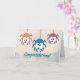 Three colourful spiders dangle with crazy cute eyes in front of a watercolor background for this congratulations card. Design © 2015 Julia Bryant.