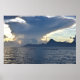 Three Crew Boats Rowing In Front Of Mo'orea Island Poster