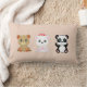 Three cute bear cartoons on beige Lumbar Pillow.