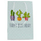 A medium gift bag with a whimsical illustration featuring 3 happy little cacti sitting in their own flower pots. They each have their own unique expressions smiling and looking happy.