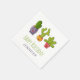 Paper napkins with a whimsical illustration featuring 3 happy little cacti sitting in their own flower pots. They each have their own unique expressions smiling and looking happy.
