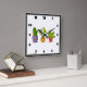 A clock with a whimsical illustration featuring 3 happy little cacti sitting in their own flower pots. They each have their own unique expressions smiling and looking happy.