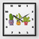 Three Cute Cactus in Flower Pots Fun Illustration Square Wall Clock