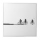 Three Cyclists Cycling Beach Reflection Sketch Ceramic Tile