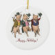 These three tuxedo-wearing pigs want to dance their way to your sparkling Christmas tree. Image is extracted from a Victorian-era holiday card. Original colours altered. Text reads, "Happy Holidays!"