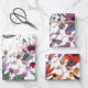 Three different colour flowers pattern wrapping paper sheet
