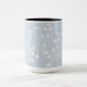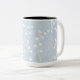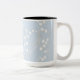 Three dimensional pattern of lily of the valley flowers on soft blue.