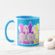 Three Easter gnomes with marshmallow bunnies, bunny ears and bunny slippers on light blue background. Featuring the original 'Three Gnomes' artwork of Rick Ellinger. For the gnome collector on your gift list, or simply for yourself. Happy Easter!