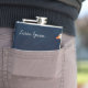 The flask itself is fine. It’s a cheap flask, obviously bought in bulk, however am prepared to overlook that. Given that it is a personalized item, I would have liked to have seen gift boxing instead of the generic packaging. Terrible printing, and/or quality. It’s a cheap, tacky vinyl. It is not cut straight and is also applied in a way that it is overhanging the bottom, causing the glue to catch on items and it will eventually roll and tear, damaging the wrap.