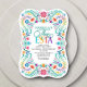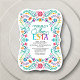 Mariachi, margaritas, and memories! Fire up the fiesta with this mexican folk art fiesta design. The colourful text and the artwork (hand-drawn by Lively Scribe herself) give this design a whimsical yet elegant vibe. Perfect for the latinx in your life. Or a party that's just conveniently close to Cinco de Mayo or Dia de los Muertos. Order your printed invitations and party supplies or download your digital invitations now for a day they'll never forget!