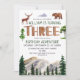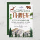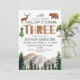 Watercolor wooden three- rustic forest boys 3rd birthday invitation.
