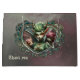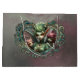 Three fairies, the companions of the magic heart. The centerpiece is the middle fairy, whose vibrant green hair gently blows in the wind and is accentuated by elegant golden horns. Her pointed ears protrude proudly, while she is dressed in elaborate green clothing decorated with intricate patterns that enhance her graceful appearance. The two little fairies are dressed in similarly intricately designed green robes adorned with fine details.