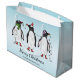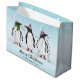 Three Festive Christmas Penguins With Custom Text Large Gift Bag