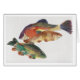 This watercolor captures three colourful fish. It was created on a specially treated paper that brings out the pigments' brilliance. The paper, a traditional type used for watercolor, has been treated with gesso, a brilliant white liquid traditionally used to prepare canvas for oil painting. When applied to watercolor paper, gesso creates a glossy surface that resists water. Also, the gesso takes on the texture of the tool used to apply it; in this case, that tool was a large, coarse brush like those used for painting walls, which created highly textured vertical lines across the entire paper surface. Because the gesso resists water, the paint sits right on the surface instead of soaking into the paper, which makes the pigments brighter and more intense than they would be on regular watercolor paper.