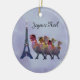 Graphic illustration of Three French Hens at the Eiffel Tower for the holidays. Brighten up the season with this Christmas theme ornament.