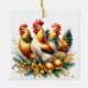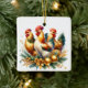 Three French Hens in pine branches and gold holiday ornaments personalised Twelve Days of Christmas themed Christmas ornament.