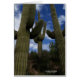 Three magnificent Giant Saguaro cacti reach for a blue sky with clouds in the Sonoran Desert printed on greeting card ready to be customised with your own text. These were photographed along the Pine Creek Loop Trail, which is in the Tonto National Forest, which is located just east of Phoenix along the Beeline Highway (Highway 87). The trailhead can be found just after mile marker 210 on the right side of the road. There's a sign for the trailhead and a small parking area there. I believe the sign says Ballantine trailhead. You can take the trail either to the left or the right. Going right is a steep climb, which becomes a gradual climb on the way back down after passing the turn off for the Ballantine Trail. I took to the trail to the left when I first went, and I wish I had gone to the right instead when I was on my way back down, as I was tired and a bit shaky going down, is I'm not in the best of shape. Next time I would prefer taking the steeper climb on the way up and going more gradual on the way down. Original photography copyright 2018 by Karen Coffelt.