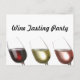 Three Glasses of Wine post card invitation, red, white, and "pink", add your own text to customise for wine tasting party, wine event, or any other use.