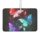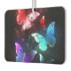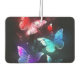 Three luminous, red, purple, green, textured, night butterflies on black luminous background.