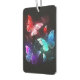 Three luminous, red, purple, green, textured, night butterflies on black luminous background.