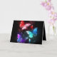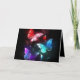 Three luminous, red, purple, green, textured, night butterflies on black luminous background.
