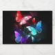 Three luminous, red, purple, green, textured, night butterflies on black luminous background.