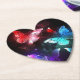 Three luminous, red, purple, green, textured, night butterflies on black luminous background.