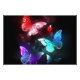Three luminous, red, purple, green, textured, night butterflies on black luminous background.