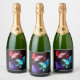 Three Glowing Butterflies on night background Sparkling Wine Label