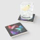 The coasters are gorgeous, a quality feel and heavy weight. They look like a precious archeological find. A rustic stone juxtaposed with a modern floral black and white print. I like the way the print goes slightly imperfect on the cut stone edges giving them a kind-of natural beauty.