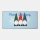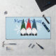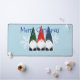 This Christmas desk mat features original art from Dogwood & Thistle of three gnomes wearing colourful tall hats. Change the custom seasonal greeting, in a fun blue font on pale blue background with white snowflakes, right on the product page to make it yours!