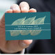 This unique, nature-inspired business card features three golden leaves, tilted at an angle, with your name in gold. The background is a calming leafy teal green. On the front your name and title appear in a box overlain on the leaves. On the back, your email, name, and phone appear at the top in larger type, with your address, website, and other details on the bottom. Two small gold leaves provide accents at the top. The template makes it easy to enter your text, and you can mix up which details you include where, or you can opt to further optimize colors and placement.