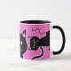 Three Black Cats on a Mug. Background colour (red) can be changed.
