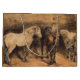This design features a painting by the French artist Théodore Géricault (1791–1824), who was one of the pioneers of the Romantic movement. It shows three horses in a stable. The horses are seen from behind with their tails on show. The horse in the middle has a chestnut brown coat, and it is flanked by two horses with white coats. The original artwork was painted by Théodore Géricault in either 1822 or 1823.