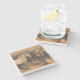 The coasters are gorgeous, a quality feel and heavy weight. They look like a precious archeological find. A rustic stone juxtaposed with a modern floral black and white print. I like the way the print goes slightly imperfect on the cut stone edges giving them a kind-of natural beauty.