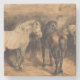 This design features a painting by the French artist Théodore Géricault (1791–1824), who was one of the pioneers of the Romantic movement. It shows three horses in a stable. The horses are seen from behind with their tails on show. The horse in the middle has a chestnut brown coat, and it is flanked by two horses with white coats. The original artwork was painted by Théodore Géricault in either 1822 or 1823.